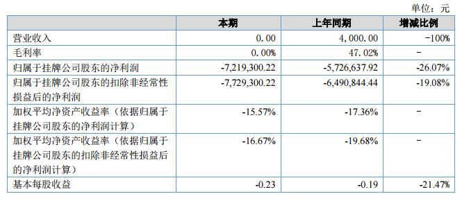 挖貝網(wǎng)9月4日,賽諾生物(證券代碼:836907)近日公布的2018年半年報顯示,截至2018年6月30日,企業(yè)實現(xiàn)營收0元;歸屬于掛牌公司股東的凈利潤為-721.93萬元。