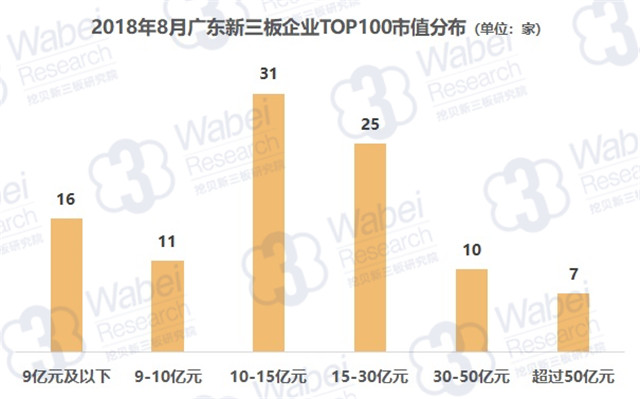 TOP100上榜門檻為7.93億元,其中有7家企業(yè)市值超過50億元,而市值在9億元及以下、9-10億元、10-15億元、15-30億元、30-50億元的企業(yè)分別有16家、11家、31家、25家、10家。