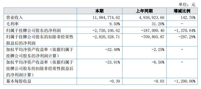 挖貝網(wǎng)9月4日,共享偉業(yè)(證券代碼:870851)近日公布的2018年半年報顯示,截至2018年6月30日,企業(yè)實現(xiàn)營收1198.48萬元;歸屬于掛牌公司股東的凈利潤為-275.01萬元。