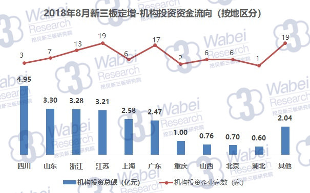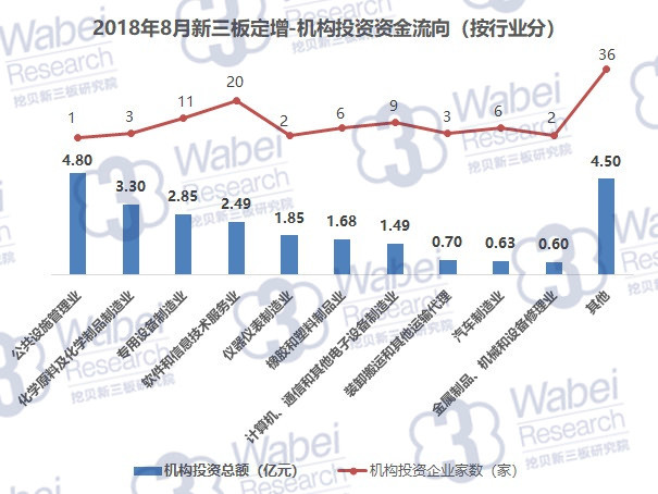 2018年8月,新三板企業(yè)共定增募資42.08億元,其中,機(jī)構(gòu)對(duì)企業(yè)投資24.89億元,環(huán)比降9.7%。機(jī)構(gòu)投資總額占新三板企業(yè)募資總額的59.1%。