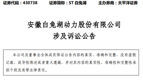8月22日,國元網(wǎng)金將白兔湖告上法庭,要求判令安徽白兔湖動力股份有限公司立即歸還借款本金人民幣3000萬元和服務(wù)費(fèi)本金126萬元,以及各種利息和罰息。