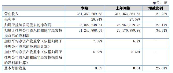 挖貝網(wǎng)9月6日,金丹科技(證券代碼:832821)近日公布的2018年半年報(bào)顯示,截至2018年6月30日,企業(yè)實(shí)現(xiàn)營(yíng)收3.81億元;歸屬于掛牌公司股東的凈利潤(rùn)為3302.22萬(wàn)元。