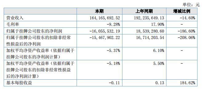 報告期內公司實現(xiàn)營業(yè)收入16,416.57萬元,同比減少14.60%;營業(yè)利潤-3,394.82萬元,同比減少292.42%;凈利潤-1482.37萬元,同比減少176.42%;經(jīng)營活動產(chǎn)生的現(xiàn)金凈流量-40.76萬元,同比減少100.91%。