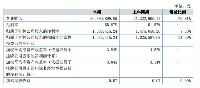 挖貝網(wǎng)9月11日,德品醫(yī)療(證券代碼:835227)近日公布的2018年半年報(bào)顯示,截至2018年6月30日,企業(yè)實(shí)現(xiàn)營(yíng)收3038.09萬(wàn)元;歸屬于掛牌公司股東的凈利潤(rùn)為158.34萬(wàn)元。