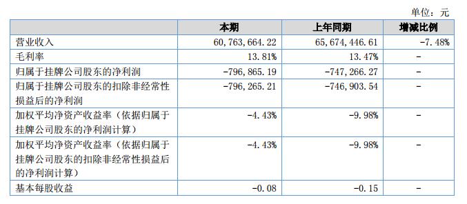 報(bào)告期內(nèi)公司實(shí)現(xiàn)營(yíng)業(yè)收入60,763,664.22元,同比減少7.48%;營(yíng)業(yè)成本為52,371,125.53元,同比減少7.84%;凈利潤(rùn)為-796,865.19元。截止2018年6月30日,資產(chǎn)總額為105,655,660.48元,負(fù)債總額為88,118,999.27元,所有者權(quán)益合計(jì)為17,536,661.21元。2018年上半年?duì)I業(yè)收入比去年同期減少7.48%的主要原因?yàn)榭蛻舻拇蟛糠钟唵渭s定在下半年執(zhí)行。2018年上半年毛利率比去年同期大致持平,2018年上半年凈利潤(rùn)比去年同期減少了6.64%主要原因是2018年上半年?duì)I業(yè)額不足。?