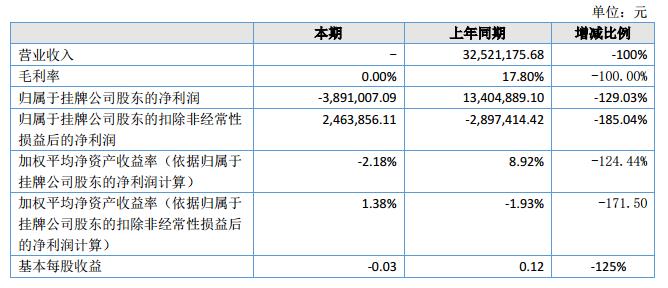 報(bào)告期內(nèi),公司因發(fā)展戰(zhàn)略需要,新的業(yè)務(wù)處于過(guò)渡階段,導(dǎo)致報(bào)告期內(nèi)新的業(yè)務(wù)尚未實(shí)現(xiàn)收入,實(shí)現(xiàn)營(yíng)業(yè)收入0萬(wàn)元,利潤(rùn)總額-388.43萬(wàn)元,歸屬于掛牌公司股東的凈利潤(rùn)-389.10萬(wàn)元,凈利潤(rùn)較上年同期減少129.03%。減少的原因由于投資損失的增加,公司持有江蘇神山風(fēng)電設(shè)備制造有限公司21.37%的股權(quán),給公司造成了-245.29萬(wàn)元虧損。?