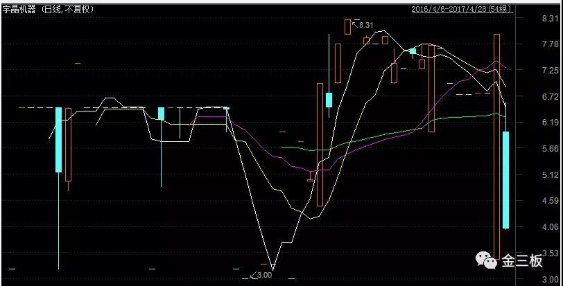 查閱宇晶機器新三板交易記錄可知,公司股價最高為2017年3月13日的8.31元/股,當天成交數(shù)量7.6萬股,成交金額63.03萬元。股價最低為2016年12月14日的3元/股,當天成交數(shù)量6.1萬股,成交金額18.3萬元。