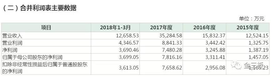不過,公司在2017年業(yè)績實現(xiàn)了“爆發(fā)式增長”,營業(yè)收入35,284.58萬元,同比增長122.86%,扣非后歸母凈利潤7658.62萬元,同比增長159.08%。2018年一季度,公司扣非后凈利潤高達3613.05萬元,一舉“成功逆襲”。