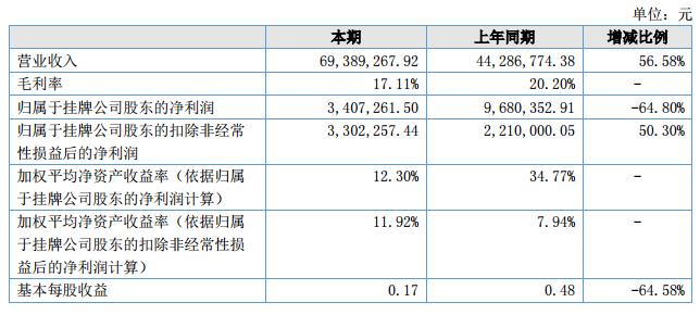 公司經(jīng)營(yíng)成果:報(bào)告期內(nèi),公司營(yíng)業(yè)收入69,389,267.92元,較上年同期增加25,102,493.54元,增長(zhǎng)56.69%,原因?yàn)椋褐饕蚴怯捎?018年上半年京東購(gòu)物節(jié)618的影響,以及市場(chǎng)拓展與開發(fā),產(chǎn)品的豐富,促使銷售額大幅提升;營(yíng)業(yè)成本分析:報(bào)告期內(nèi),營(yíng)業(yè)成本比上年同期增加22,173,510.22元,增幅為61.74%,主要原因是由于銷售收入的增長(zhǎng),成本相應(yīng)增加;歸屬公司股東的扣除非經(jīng)常損益后的凈利潤(rùn)3,321,551.70元,較上年同期增長(zhǎng)50.30%,原因?yàn)椋菏杖氪蠓黾拥耐瑫r(shí),成本費(fèi)用相對(duì)來(lái)說(shuō)增加的幅度較小,邊際利潤(rùn)增加的結(jié)果。?