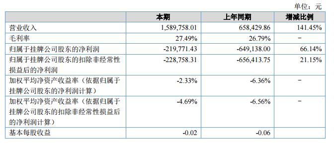 報告期內(nèi),本公司營業(yè)收入和歸屬于掛牌公司股東的凈利潤同比有較大增長,公司實現(xiàn)營業(yè)收入1,589,758.01元;歸屬于掛牌公司股東的凈利潤-219,771.43元,較上年同期增長66.14%,主要原因是由于公司的銷售收入有所增加,在成本控制方面加強(qiáng)管理;凈資產(chǎn)為9,448,266.98元,較期初凈資產(chǎn)減少2.27%;另一方面成本與銷售費(fèi)用也較上期分別增長139.13%和199.66%。隨著公司業(yè)務(wù)量的增加和銷售范圍的擴(kuò)大,相應(yīng)負(fù)債較年初也明顯增加;經(jīng)營活動產(chǎn)生的現(xiàn)金流量凈額942,323.12元,上年同期為4,936,443.61元,下降80.81%,主要是由于本期公司購買的銀行理財產(chǎn)本未到期。?