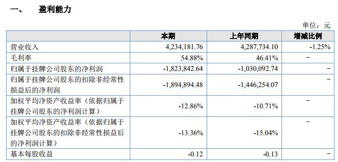 挖貝網(wǎng)訊 9月14日消息,金正動(dòng)畫(證券代碼:835195)近日公布的2018年半年報(bào)顯示,截至2018年6月30日,企業(yè)實(shí)現(xiàn)營(yíng)收423.42萬(wàn)元;歸屬于掛牌公司股東的凈利潤(rùn)為-1,823,842元。