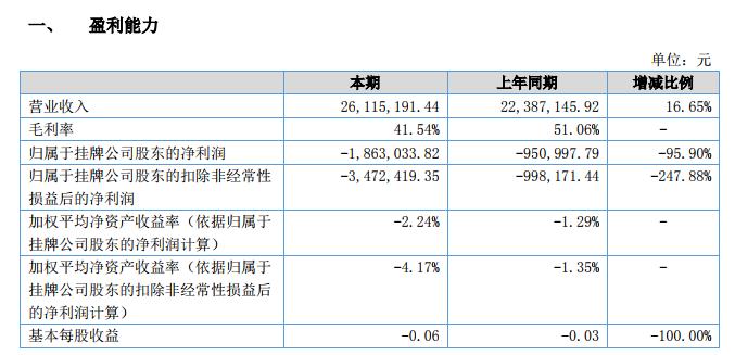 挖貝網訊 9月16日消息,海潤檢測(證券代碼:836559)近日公布的2018年半年報顯示,截至2018年6月30日,企業(yè)實現營收2611.52萬元;歸屬于掛牌公司股東的凈利潤為-186萬元。