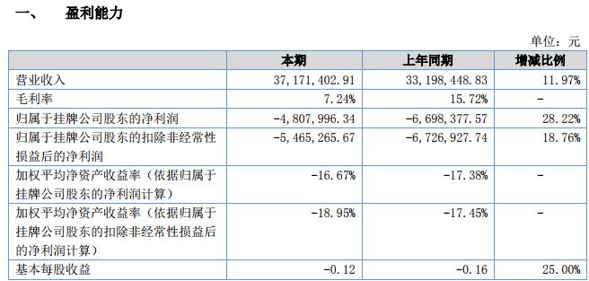 一、財(cái)務(wù)狀況:公司資產(chǎn)總額為 107,905,468.01 元,相比去年同期 117,147,646.84 元,下降 7.89%,凈資產(chǎn)總額為 26,431,612.09 元,相比去年同期 31,239,608.43 元,下降 15.39%。總資產(chǎn)下降主要原因?yàn)楣居趫?bào)告期內(nèi)償還長(zhǎng)期應(yīng)付及應(yīng)付賬款,凈資產(chǎn)下降主要原因?yàn)榻?jīng)營(yíng)虧損。