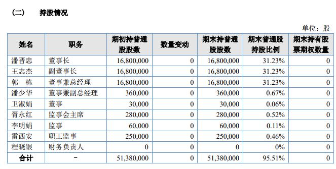 據(jù)挖貝網(wǎng)了解,2018年9月13日股東潘晉忠、郭棟、王志杰在全國(guó)中小企業(yè)股份轉(zhuǎn)讓系統(tǒng)通過盤后協(xié)議轉(zhuǎn)讓方式合計(jì)完成268.8萬股的減持,權(quán)益變動(dòng)前潘晉忠、郭棟、王志杰合計(jì)持股90%,權(quán)益變動(dòng)后持股比例合計(jì)為85%。