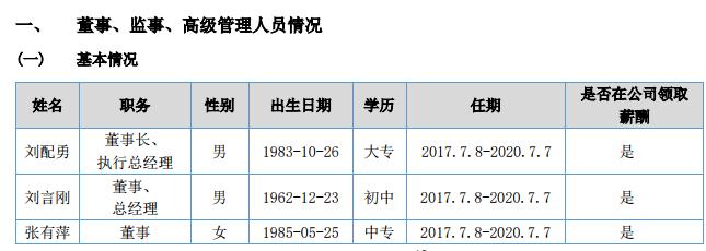 公司董事會最高學(xué)歷為大專,還有初中學(xué)歷,所有高管里,只有一位具有碩士學(xué)位,本科一位都沒有。