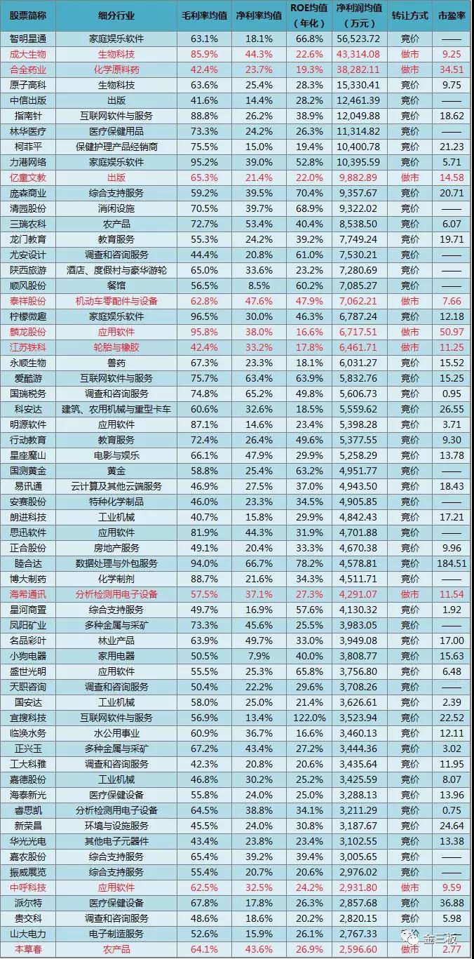 考慮到新三板公司大多體量較小,財(cái)務(wù)指標(biāo)會(huì)有所失真,因此三胖哥再加上一條,凈利潤(rùn)不低于3000萬元。