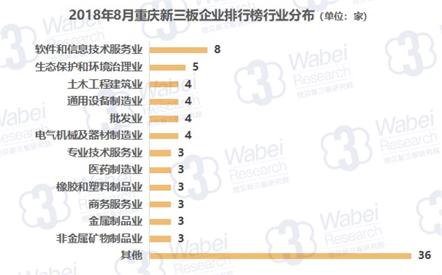 從行業(yè)分布來看,軟件和信息技術(shù)服務業(yè)的企業(yè)數(shù)量最多,有8家企業(yè);其次是生態(tài)保護和環(huán)境治理業(yè),有5家企業(yè)。(來源:挖貝新三板研究院)