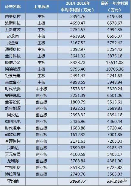 衡量企業(yè)業(yè)績的核心指標,凈利潤(扣非前后孰低)方面,25家新三板公司最近一年平均值僅有5948.56萬元,2014-2016年,三年均值僅3859.77萬元。