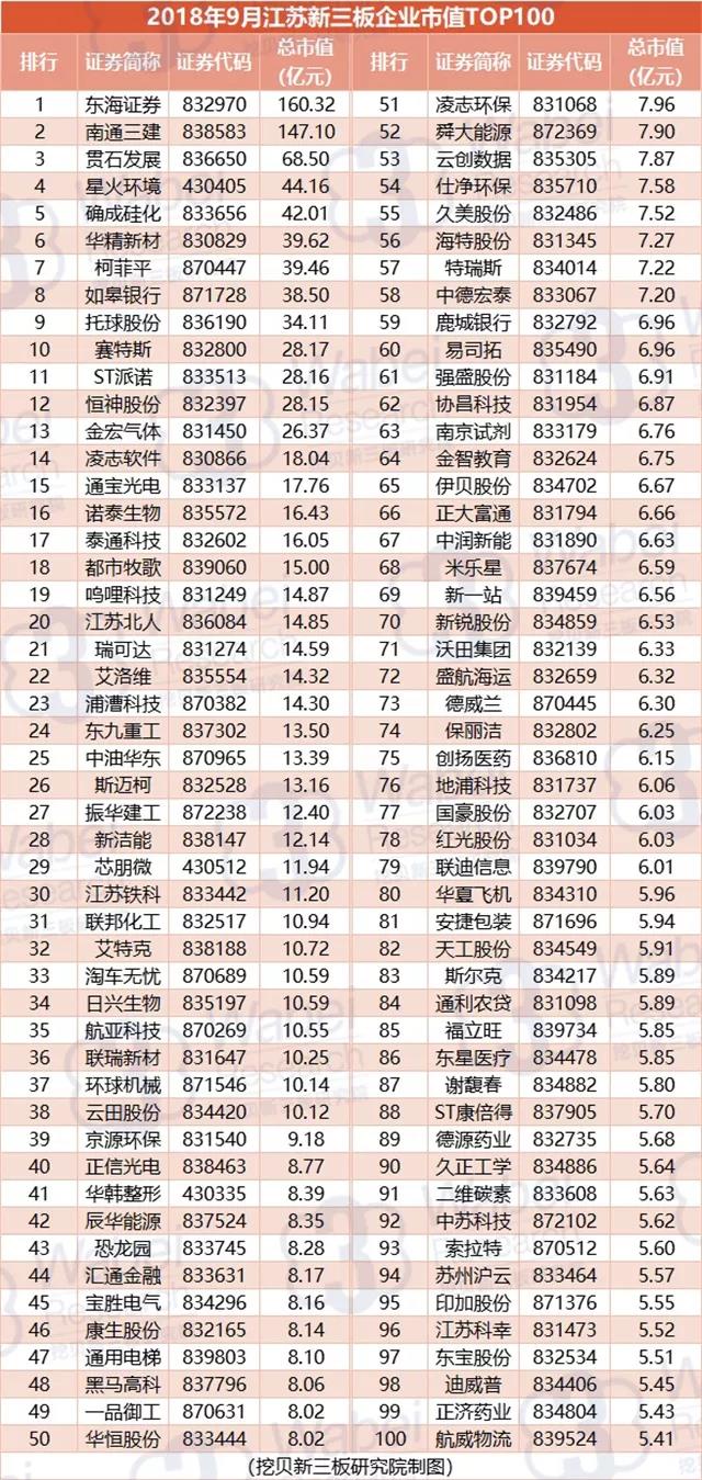 附:2018年9月江蘇新三板企業(yè)市值TOP100