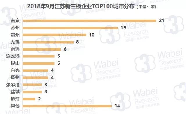 截止到2018年9月30日,新三板共有10946家掛牌公司,江蘇有1306家新三板企業(yè),占比11.9%;其中726家企業(yè)有市值,占比55.6%。