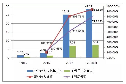 更可怕的是,僅2018年上半年,比特大陸營業(yè)收入就達到了28.45億美元,同比增長938.32%,近乎10倍,高于2017年全年的收入,凈利潤也達到了7.43億美元,同比增長795.18%,真是當(dāng)之無愧的吸金王啊。