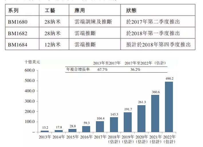 AI芯片行業(yè)近年來發(fā)展迅速,市場規(guī)模由2013年的132億美元增至2017年的1044億美元,年復(fù)合增長率為67.7%,預(yù)計2022年達到4902億美元。比特大陸憑借在ASIC芯片領(lǐng)域的技術(shù)積累以及占員工總數(shù)30%的840名研發(fā)工程師有成為AI芯片行業(yè)的有力競爭者。