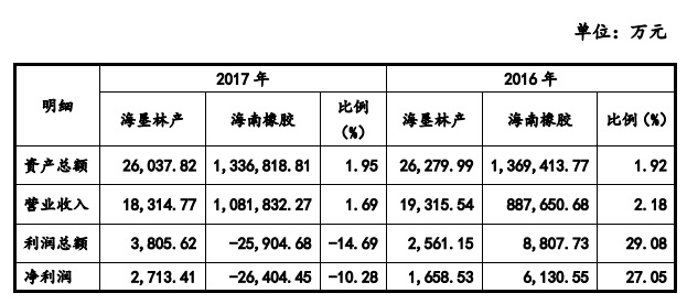 2016年、2017年海墾林產對海南橡膠的業(yè)績貢獻明細(挖貝網(wǎng)wabei.cn配圖)