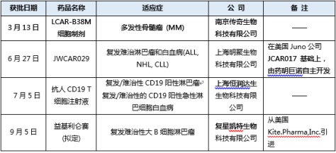 公開信息顯示,2018年3月以來,陸續(xù)有4家國內(nèi)企業(yè)獲得CAR-T臨床批件,詳情如下表: