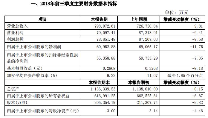 快報(bào)顯示,2018年前三季度實(shí)現(xiàn)營業(yè)收入79.81億元,同比增長9.81%,其中實(shí)現(xiàn)出口營業(yè)收入45.02億元,同比增長20.45%;實(shí)現(xiàn)歸屬于母公司的凈利潤6.10億元,同比下降11.75%;實(shí)現(xiàn)扣非后歸屬母公司凈利潤5.54億元,同比下降7.35%。