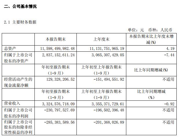 挖貝網(wǎng) 10月12日消息,方正科技發(fā)布前三季度業(yè)績報(bào)告,收入33.25億元,同比下跌0.92%。虧損2.31億元,去年同期虧損1.97億元。