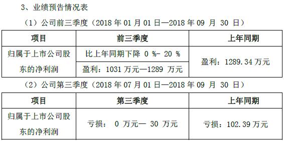 前三季度盈利在1031萬元—1289萬元之間,比上年同期下降0%-20%,去年同期盈利1289.34萬元。