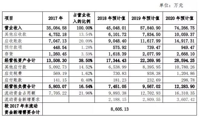 ▲新安潔預(yù)測2018至2020年流動(dòng)資金占用情況
