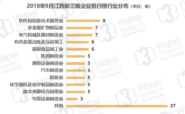 從行業(yè)分布來(lái)看,軟件和信息技術(shù)服務(wù)業(yè)的上榜企業(yè)數(shù)量最多,有9家企業(yè);其次是非金屬礦物制品業(yè)、電氣機(jī)械及器材制造業(yè),均有7家企業(yè);有色金屬冶煉及壓延加工、農(nóng)副食品加工業(yè)排名第四,均有6家企業(yè)。(來(lái)源:挖貝新三板研究院)