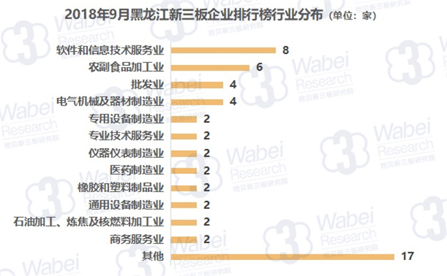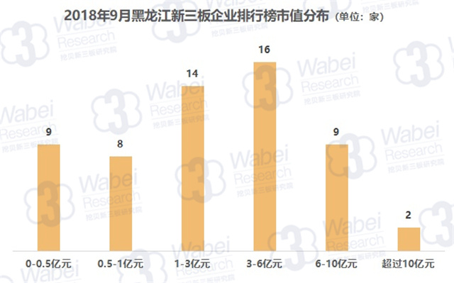 截止到2018年9月30日,新三板共有10946家掛牌公司,黑龍江有97家新三板企業(yè),占比0.9%;其中58家企業(yè)有市值,占比59.8%。