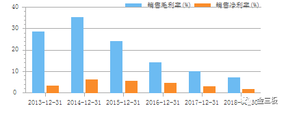 此外,公司2017年銷售毛利率和銷售凈利率分別為10%和2.97%,兩項(xiàng)數(shù)據(jù)都對(duì)比2016年,均嚴(yán)重下滑。