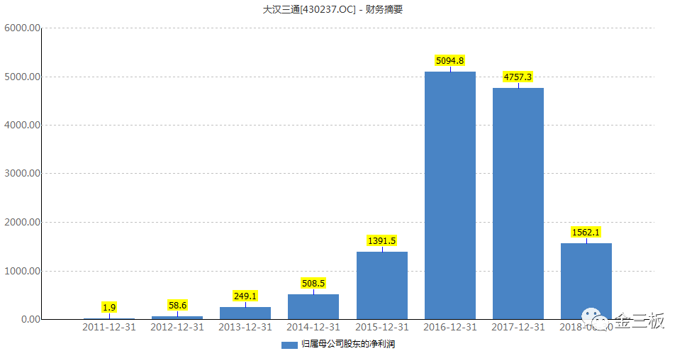 交出如此漂亮的成績(jī)單,自然讓大漢三通成為了新三板上的大牛股。