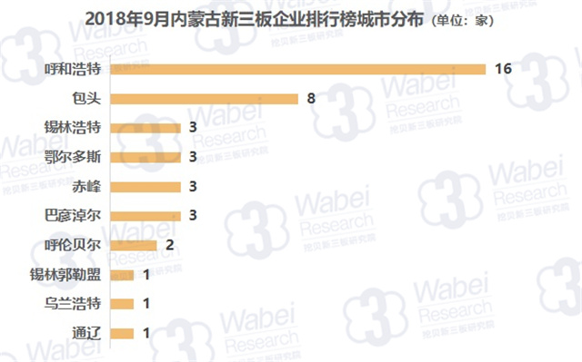 從所在城市來(lái)看,呼和浩特上榜企業(yè)數(shù)量最多,有16家,其次是包頭市,有8家企業(yè)上榜。