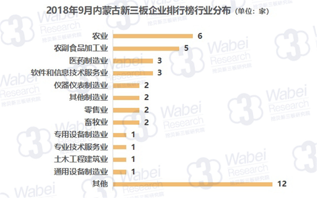 從行業(yè)分布來(lái)看,農(nóng)業(yè)上榜企業(yè)數(shù)量最多,有6家企業(yè);其次是農(nóng)副食品加工業(yè),有5家企業(yè)。(來(lái)源:挖貝新三板研究院)