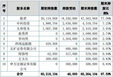 2017年年報顯示,公司股東人數(shù)為40戶,前十大股東中,多名機(jī)構(gòu)股東上榜,包括中科投資、太和資本以及證券公司五礦證券、申萬宏源證券等。