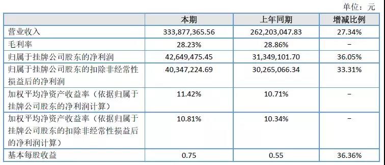 春暉智控2018年半年報顯示,上半年公司實現(xiàn)營業(yè)收入3.34億元,同比增長27.3%;凈利潤4265萬元,同比增長36%。公司表示,業(yè)績增長主要是市場需求增加,導(dǎo)致營業(yè)收入增長等因素影響。