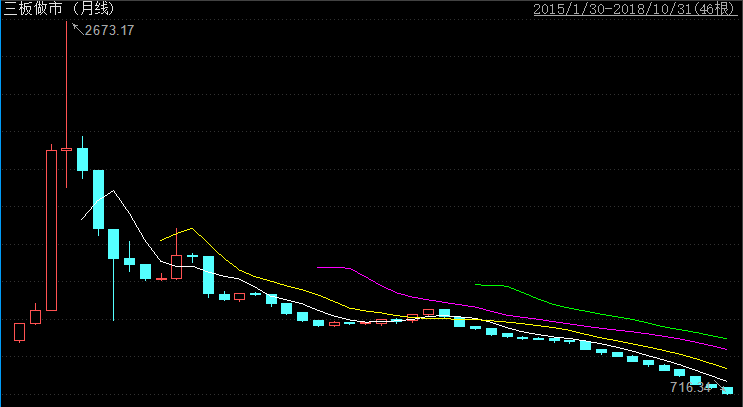 這是三板做市指數(shù)(899002)的月K線,10月結束,已經(jīng)連續(xù)19根陰線。上一次,我們看到做市指數(shù)單月上漲,還是遙遠的2017年3月。