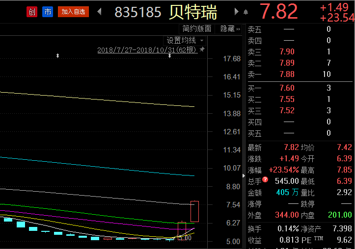 我認為這兩天的上漲,和掛牌企業(yè)三季報是密切相關的。舉個例子,貝特瑞(835185.OC)過去一年里,股價從22元一路殺回不到6元,可最近兩天就反彈了50%。