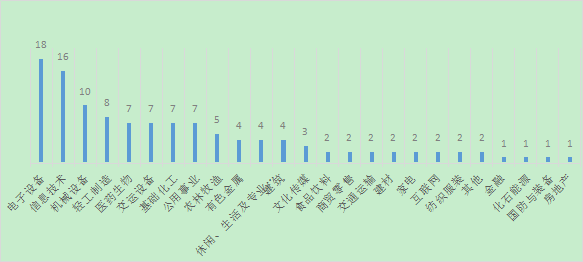 在今年已發(fā)生的并購(gòu)案例中,來(lái)自傳統(tǒng)行業(yè)的買方比較活躍。細(xì)分看,今年128起并購(gòu)案例中涉及24個(gè)一級(jí)行業(yè)。其中,電子設(shè)備行業(yè)居于首位,并購(gòu)案例達(dá)18起,其次是信息技術(shù)、機(jī)械設(shè)備行業(yè)并購(gòu)案例分別達(dá)到16例、10例。