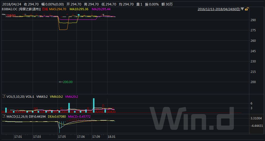 自掛牌后,母嬰之家股價(jià)就在298元上下做窄幅震動(dòng),摘牌前,公司收盤價(jià)294.7元/股,高居新三板所有掛牌公司榜首,是一位市值高達(dá)18億的“另類股王”。