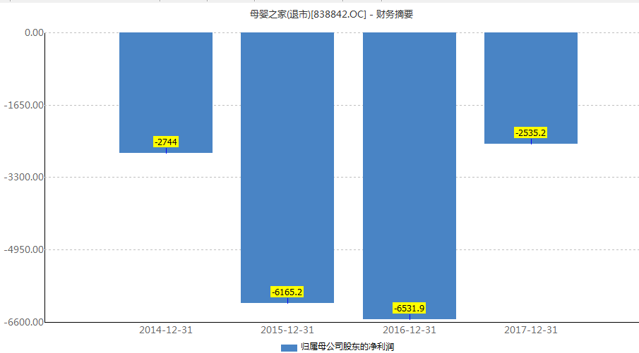 2014-2017年,母嬰之家營(yíng)業(yè)收入先升后降,分別實(shí)現(xiàn)25,325.9萬(wàn)元、43,900.1萬(wàn)元、19,974.9萬(wàn)元和5,864.0萬(wàn)元。同期,公司歸母凈利潤(rùn)分別為-2,744.0萬(wàn)元、-6,165.2萬(wàn)元、-6,531.9萬(wàn)元和-2,535.2萬(wàn)元。