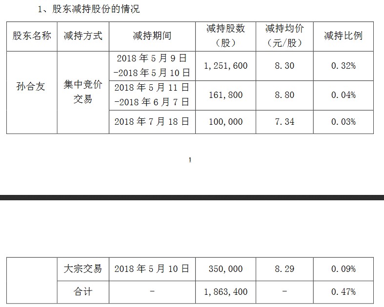 根據(jù)積成電子此前公告,今年5月9日至2018年7月18日期間,孫合友合計減持公司無限售條件流通股186.34萬股,占公司總股本的0.47%;截至7月20日,孫合友先生持有公司無限售條件流通股575.14萬股,占公司總股本的1.46%。