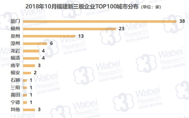 截至2018年10月31日,新三板共有10892家掛牌公司,福建有378家新三板企業(yè),占比3.5%;其中259家企業(yè)有市值,占比68.5%。