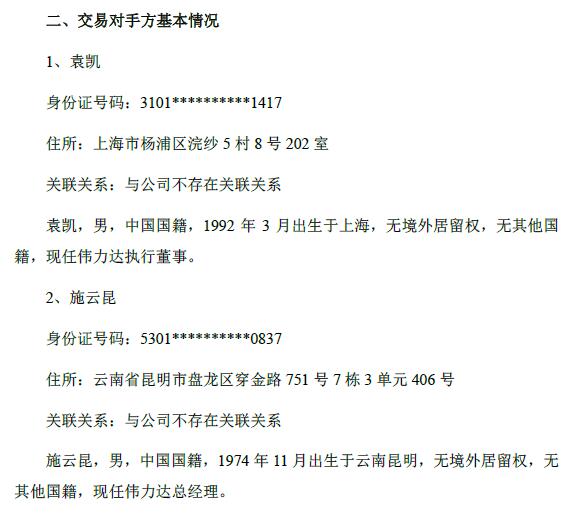 偉力達(dá)法定代表人袁凱,出生1992年,持有偉力達(dá)60%股份,施云昆持有偉力達(dá)40%的股份。