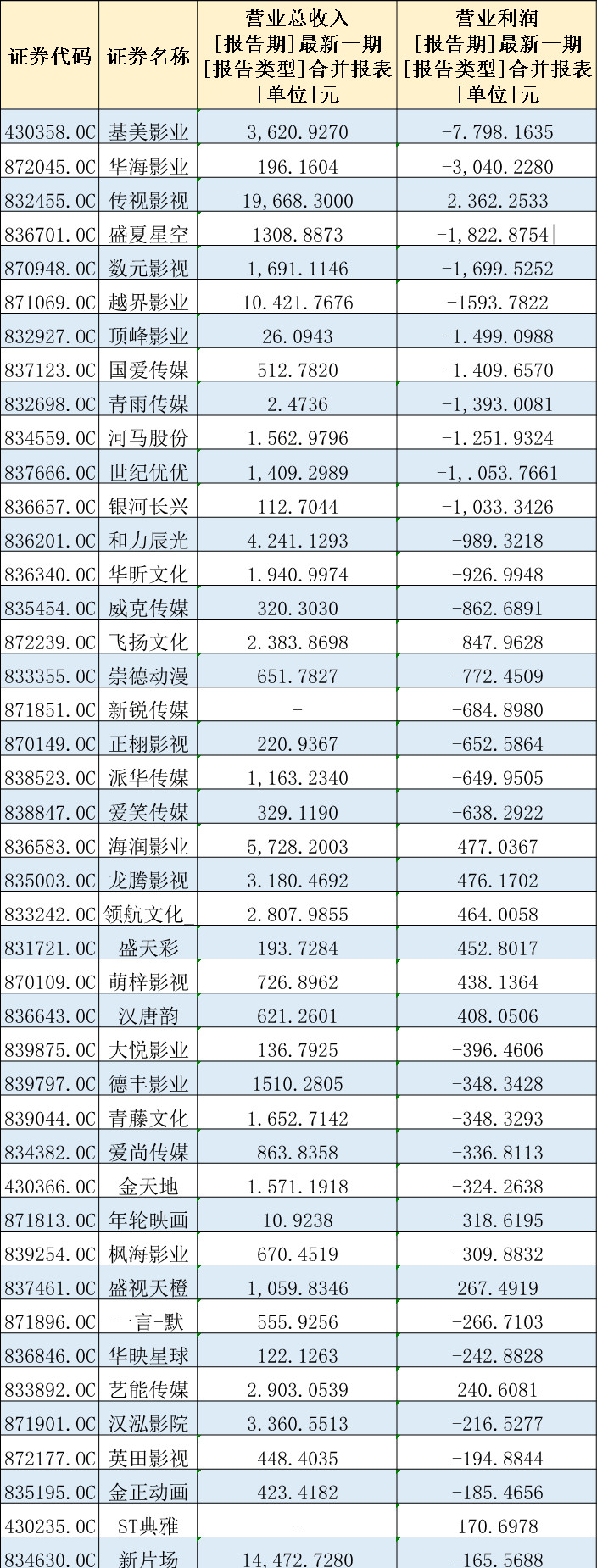 根據(jù)最新披露的半年報,有64家新三板影視股處于虧損狀態(tài),占比52%。