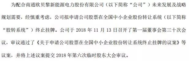 歐貝黎11月13日公告,公司已經(jīng)計(jì)劃申請終止掛牌新三板。